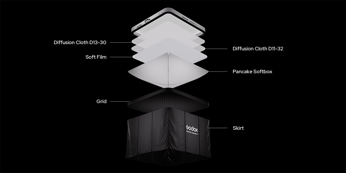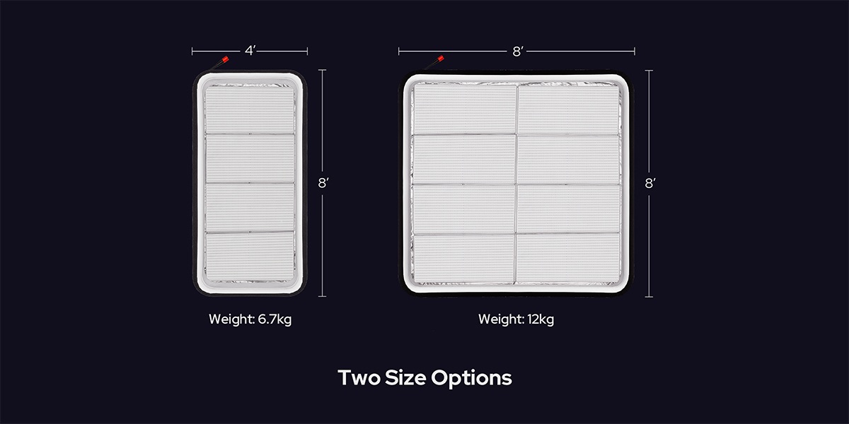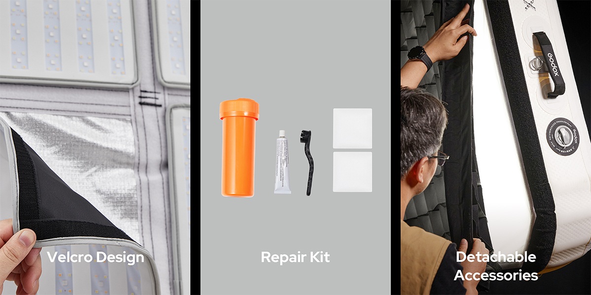Daha yüksek parlaklık için 4'×8', daha yumuşak bir ışık için 8'×8' formatı mevcuttur ve her ikisi de aynı kontrol ünitesini kullanır. Modüler tasarımı sayesinde paneller cırt bantlı (Velcro) yapı ile kolayca değiştirilebilir. Arka taraftaki D-halkaları, panelleri bağlamayı veya genişletmeyi kolaylaştırarak büyük ölçekli kurulumlarda esneklik sağlar.