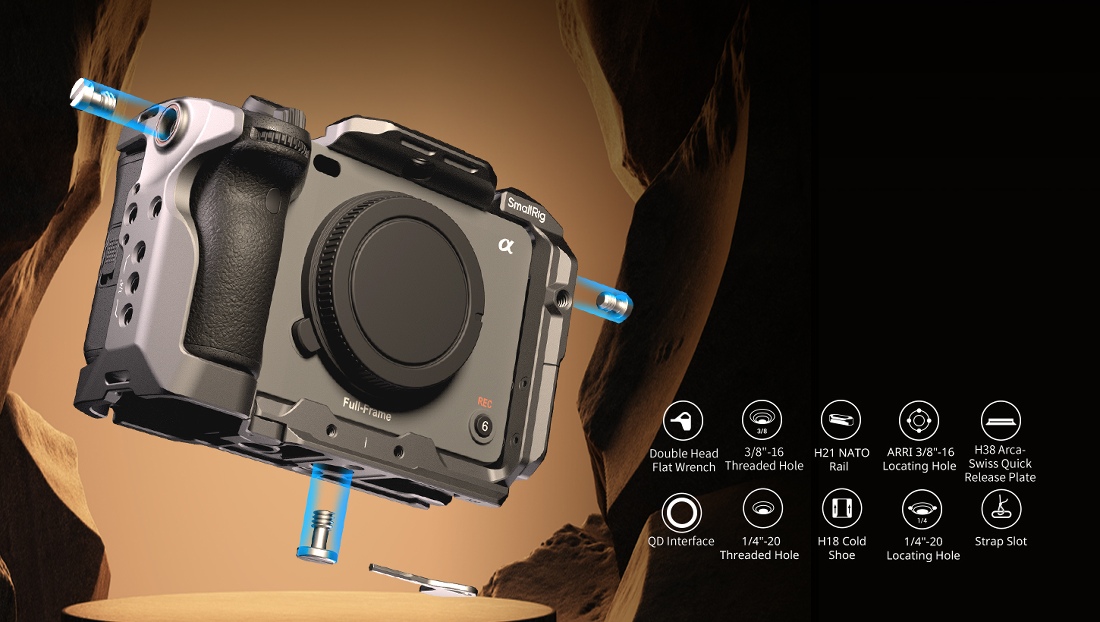 Sony FX3 / FX30 4772 için SmallRig HawkLock Hızlı Çıkarmalı Yarım Kafes, kamerayı korumak ve aksesuar montaj noktaları sağlamak için tasarlanmıştır. Modüler kafes,