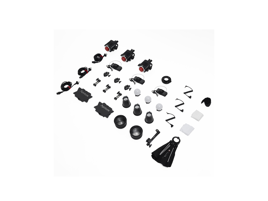 3x STORM 80c Işık Gövdesi (Yoke ile birlikte) 3x Mini ProLock Hyper Reflektör 3x Mini Lantern Difüzör 3x Mini ProLock Montaj Koruma Kapağı 3x AC Güç Adaptörü 3x AC Güç Kablosu (4 m) 2x CF4 Fresnel 2x CF4 Barn Door 1x Light Dome 40 1x STORM 80c El Tipi Kullanım Aparatı 1x STORM 80c Bowens Mount Adaptörü 3x D-Tap – 5.5 mm DC Barrel Güç Kablosu 3x Aputure Super Clamp 3x Aputure Universal Magic Arm 1x Sert Tekerlekli Taşıma Çantası