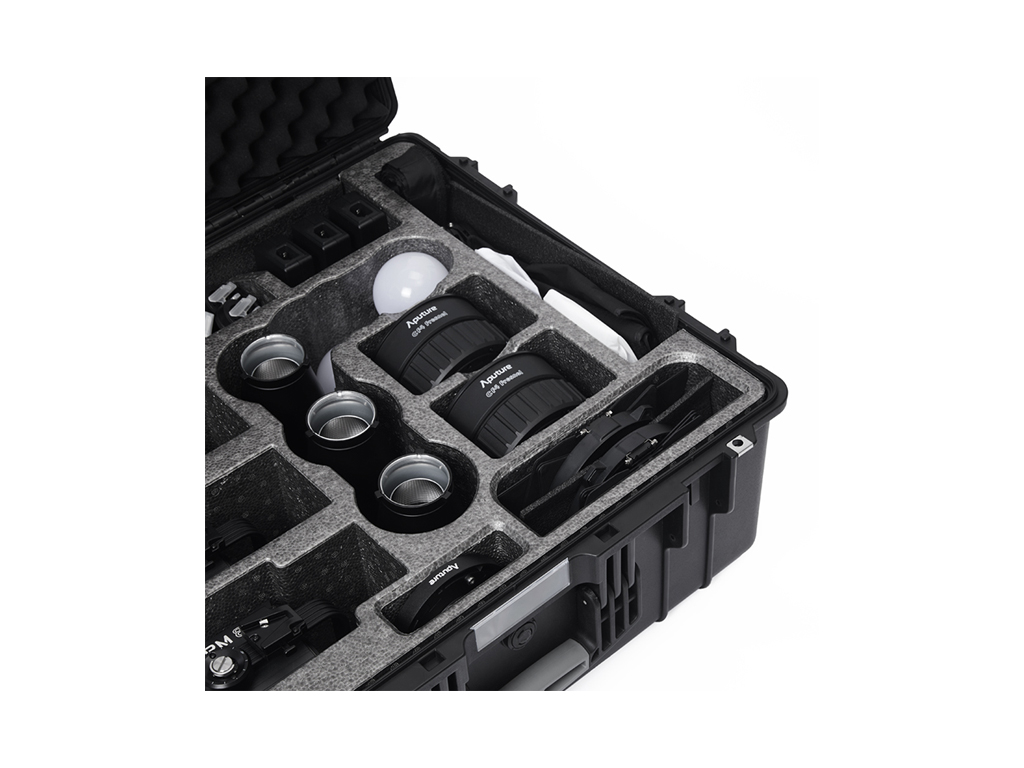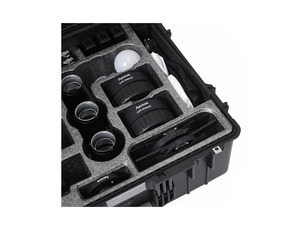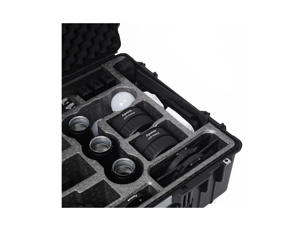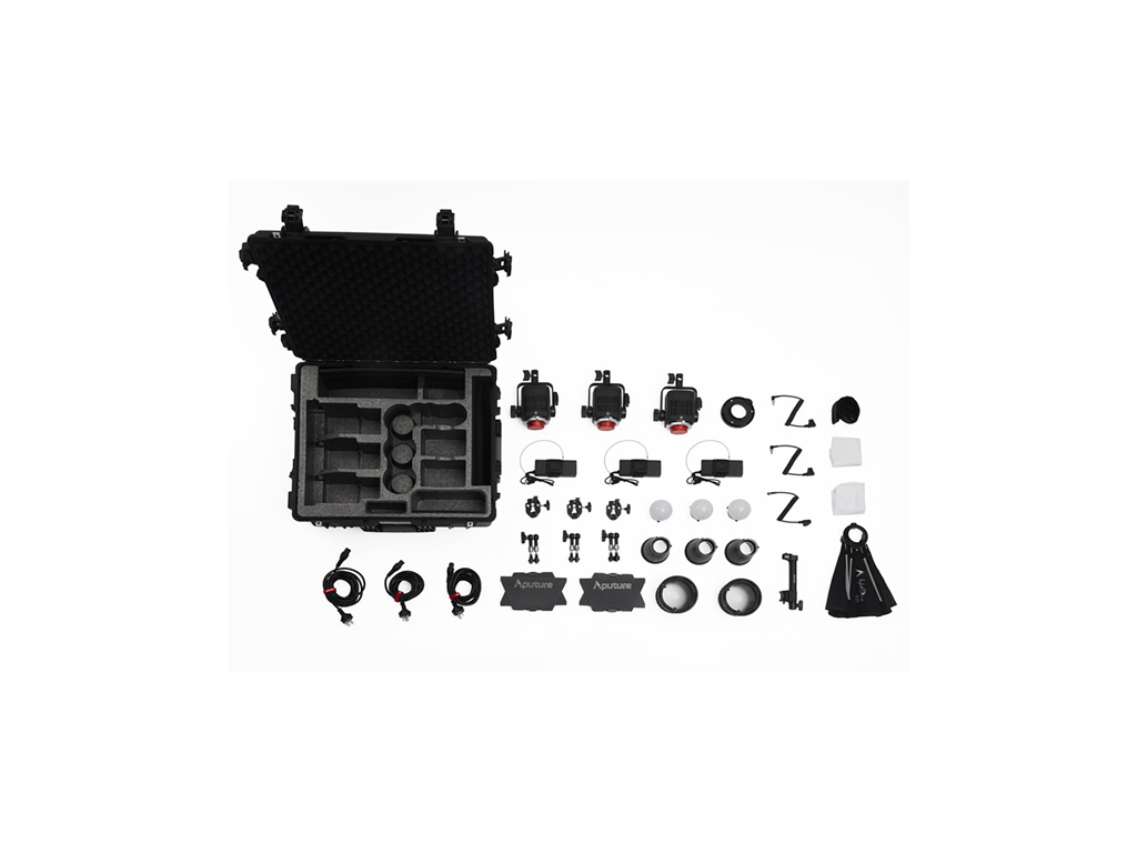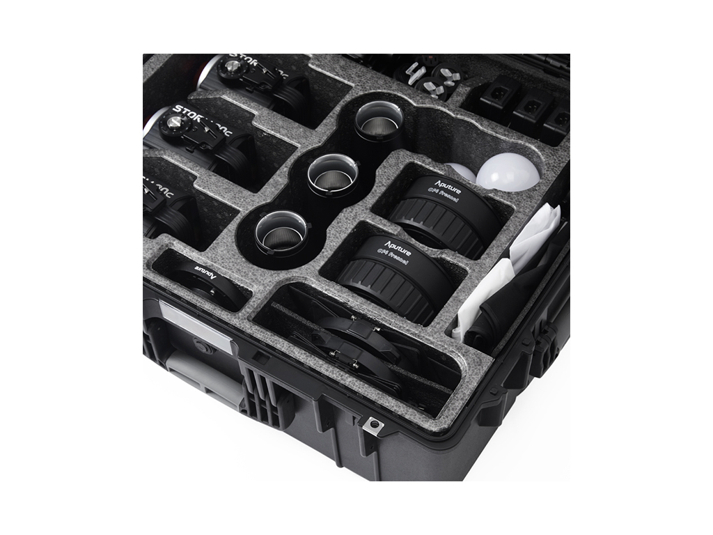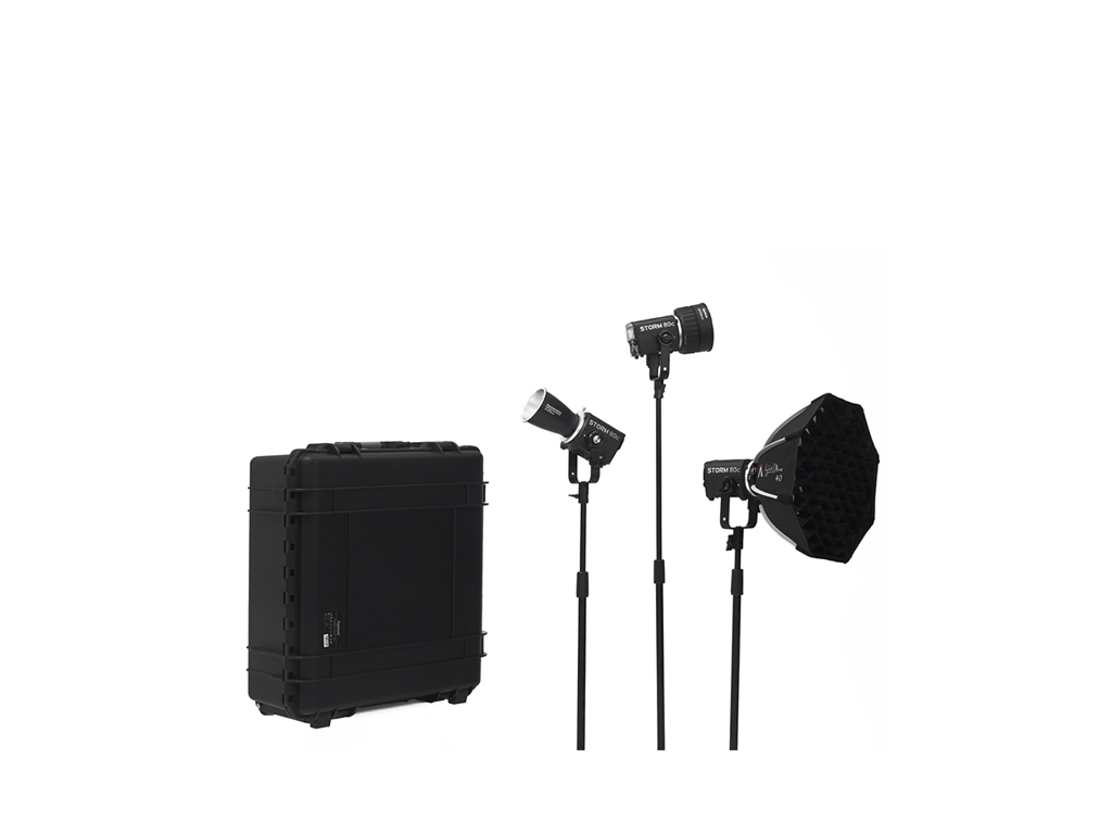 Aputure STORM 80c 3’lü Işık Kiti, profesyonel kullanım için tasarlanmış hepsi bir arada bir aydınlatma çözümüdür. Kit içerisinde; BLAIR-CG ışık motoruna sahip üç adet STORM 80c, Hyper Reflector’lar, CF4 Fresnel (barn door’lar ile), Mini Lantern Diffuser’lar, Light Dome 40 Diffuser, Bowens adaptör, elde kullanım aparatı, batarya kabloları ve montaj clamp’leri bulunur. Tüm ekipmanlar, dayanıklı tekerlekli sert taşıma çantası içinde sunulur.