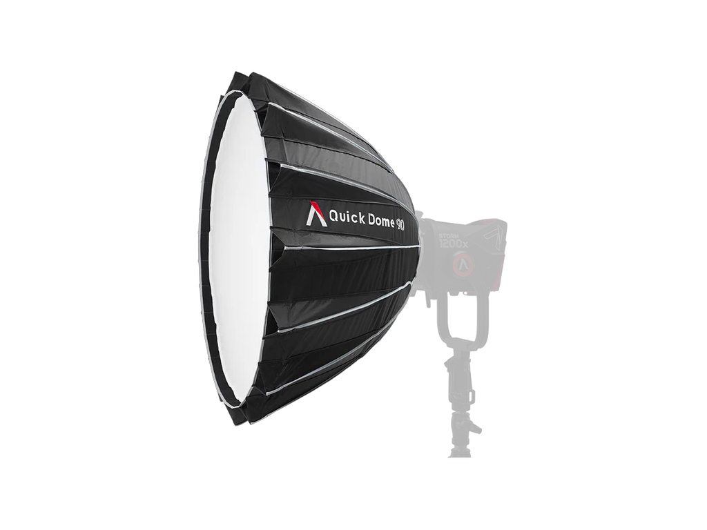 Quick Dome 90, sette hızlı ve güvenilir ışık şekillendirme için tasarlanmış, Bowens bağlantı tipine sahip 90 cm (3 ft) çapında dairesel bir softbox’tır.Hızlı açılır mandal mekanizması sayesinde kullanıcılar, çelik destek çubuklarını speed ring üzerine saniyeler içinde gererek hem kurulum hem de toplama sürecini önemli ölçüde hızlandırabilir.Genişletilmiş yan tutma kolu, montaj ve demontaj işlemlerini daha kolay ve kontrollü hale getirirken, Quick Dome 90 düz şekilde katlanarak depolama ve taşıma sırasında pratiklik sağlar.Ürün; 1 stop ve 2 stop difüzyon, iç difüzör (baffle) ve 40° ışık kontrol grid’i ile birlikte gelir.