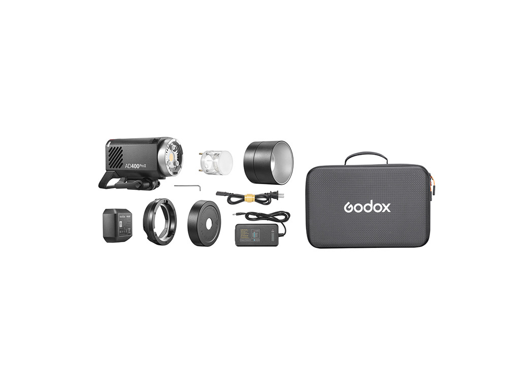 Godox AD400Pro II Flaş GövdesiFlaş TüpüReflektörLityum BataryaŞarj CihazıGüç KablosuBowens Mount AdaptörüKoruma KapağıAnahtar (Wrench)Taşıma Çantası
