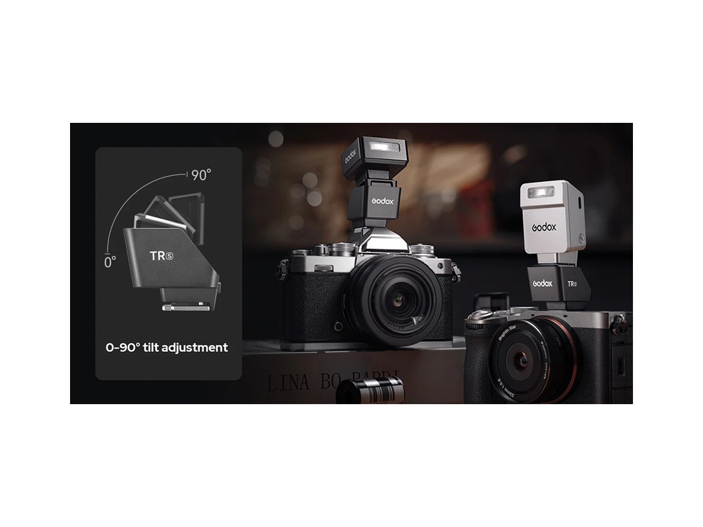 TR TTL Hot Shoe Riser, flaşı 30 mm yükselterek geniş lenslerle kadraj gölgelenmesini önler. Canon E-TTL II, Nikon i-TTL, Sony, Fujifilm, OM System ve Panasonic TTL sistemleriyle uyumludur. 0–90° eğim ayarı ile direkt veya yansıtmalı flaş kullanımına izin verir.