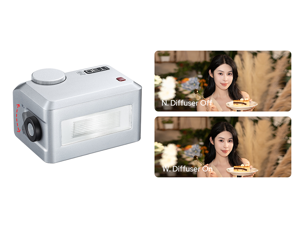 Kolu hafifçe çektiğinizde, iT30 Pro’nun dahili difüzörü devreye girer; daha geniş kapsama alanı ve yumuşak, eşit ışık dağılımı sağlar—ek ekipmana gerek kalmadan.
