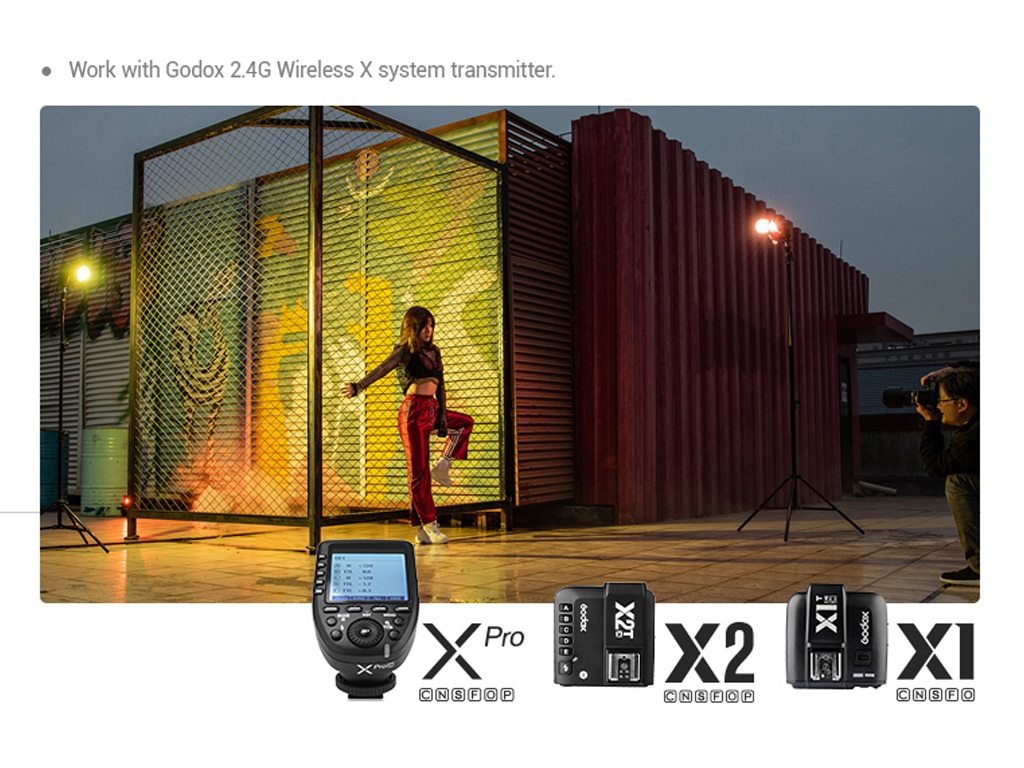 • 7Dahili Godox 2.4G Kablosuz X sistemi ile Godox ekosistemindeki diğer flaşları kontrol edebilir, bir tetikleyici işlevi görebilir.