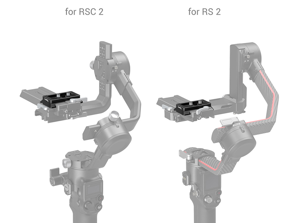 RS 2 ve RSC 2 Gimbal'lara uyması için iki adet 1/4"-20 vidayla kamera kafesine takılmak üzere tasarlanmıştır ve orijinal Arca Plakasının kafese yalnızca