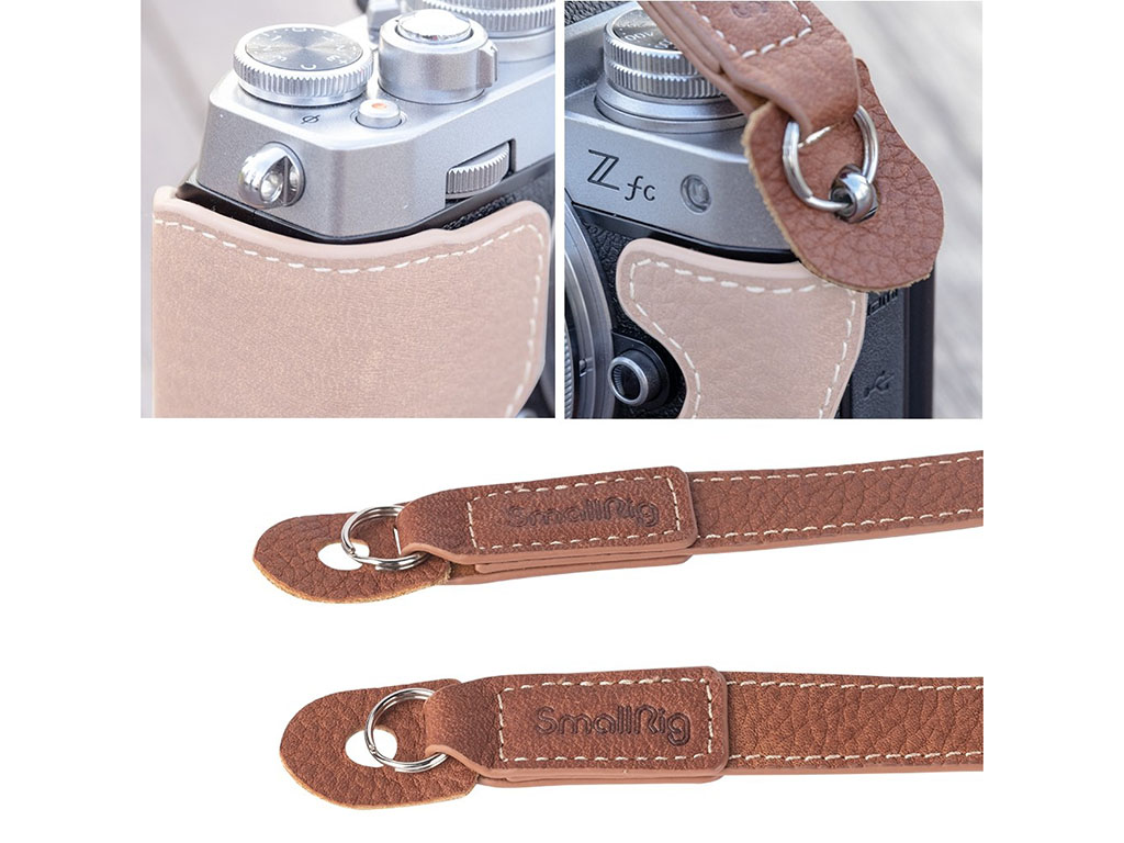 Yuvarlak bağlantı delikleri ve üçgen bölmeli halkasıyla fotoğraf makinesine uyar.