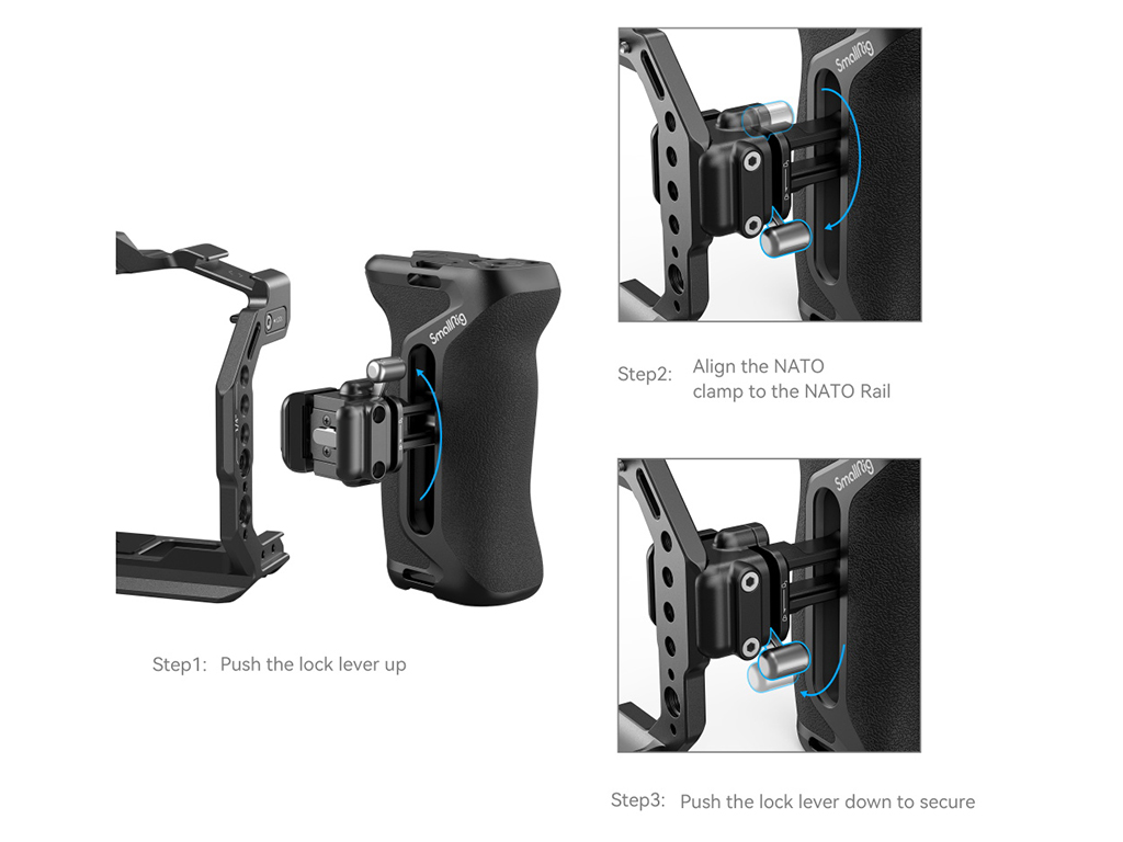SmallRig Snap-on Quick Lock NATO Yan Tutağı 4017, kamera hareketine yardımcı olmak ve sol ve sağ elle yapılan çekimleri sabitlemek için tasarlanmıştır ve temel aksesuar