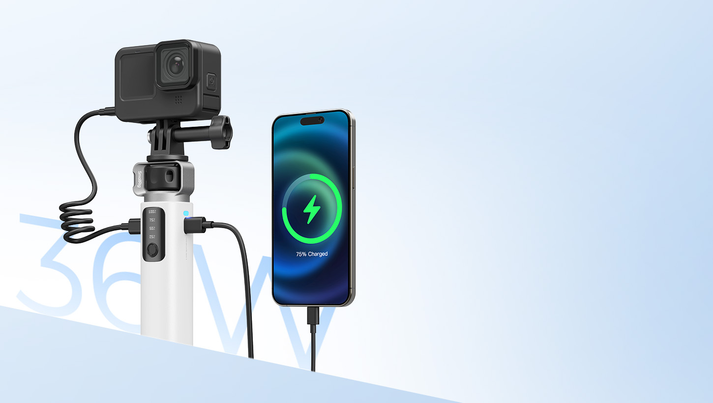 Üstteki 1/4"-20 vida ve düğme, uyumluluk ve çeşitli cihazlar için çok yönlü güç sağlar.
