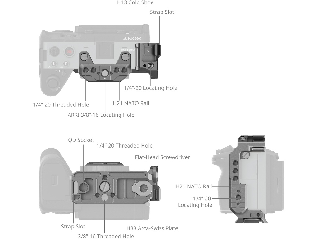 Sony FX3 / FX30 4772 için SmallRig HawkLock Hızlı Çıkarmalı Yarım Kafes, kamerayı korumak ve aksesuar montaj noktaları sağlamak için tasarlanmıştır. Modüler kafes,