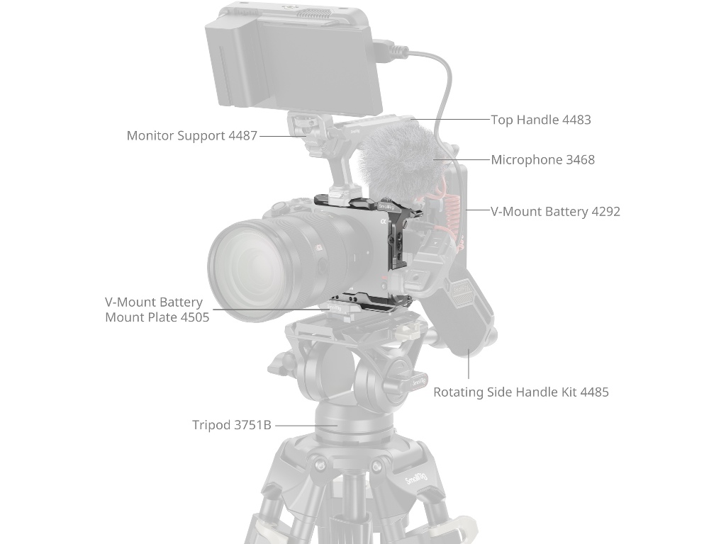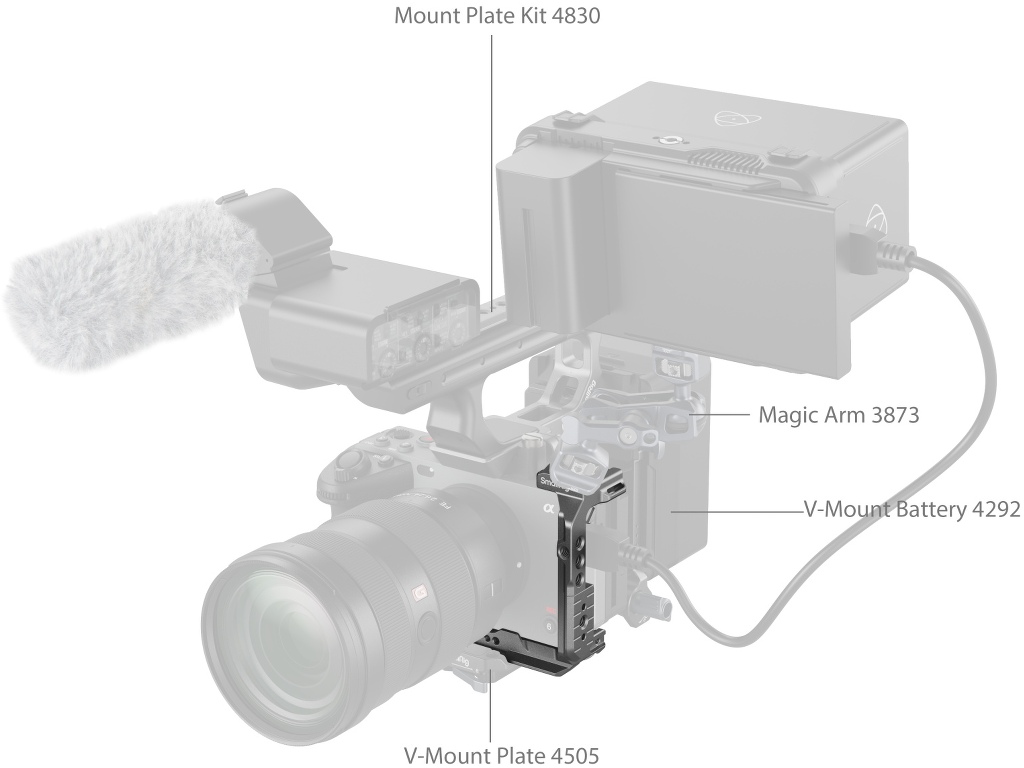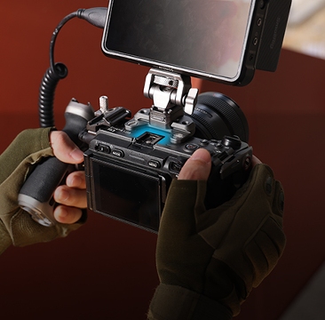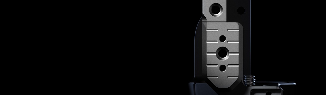 zamanda, geleneksel soğuk pabuç, NATO Kelepçesi ve Arca-Swiss Kelepçesi eko-aksesuarlarıyla uyumludur. Ek olarak, kafeste yerleşik 1/4"-20 dişli delikler, ARRI 3/8"-16