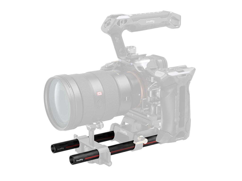 SmallRig 15 mm Karbon Fiber Çubuklar (Çift, 8") 5211 ve (Çift, 12") 5212, birlikte verilen 15 mm çubuk kelepçeleriyle aksesuarın genişletilmesini kolaylaştırmak