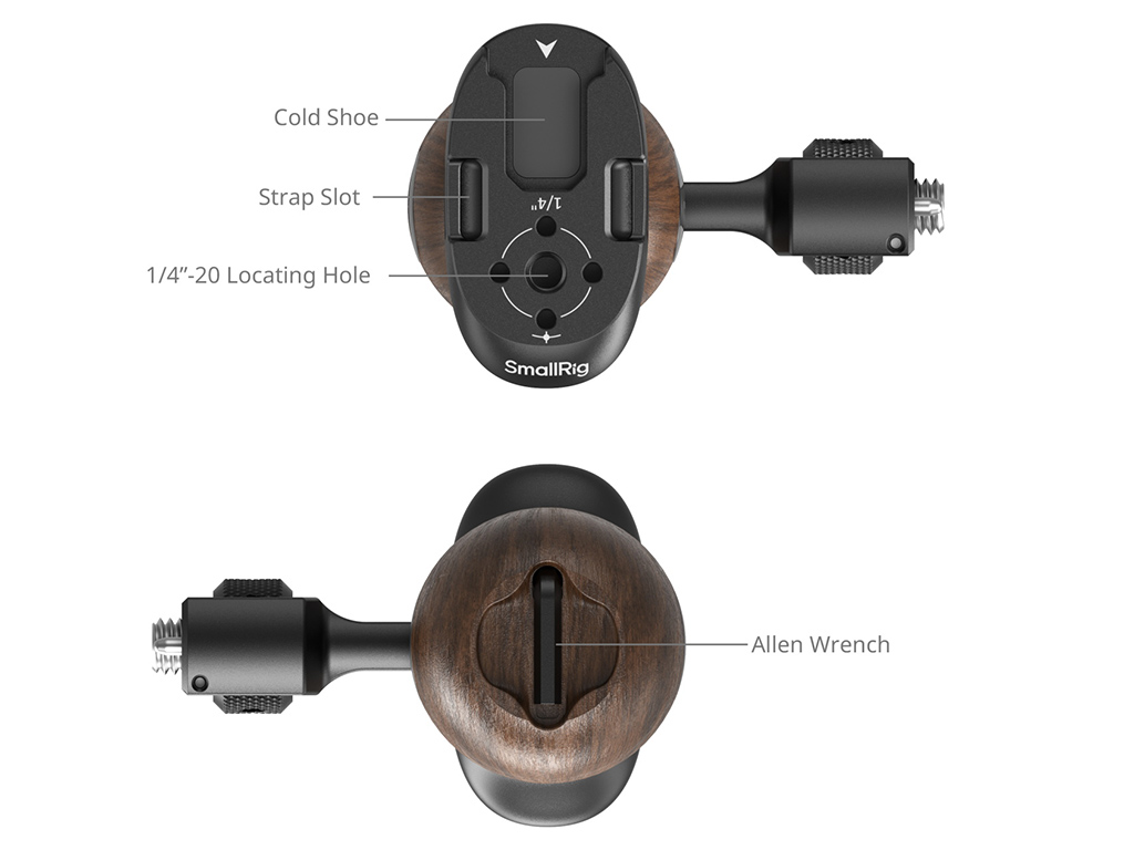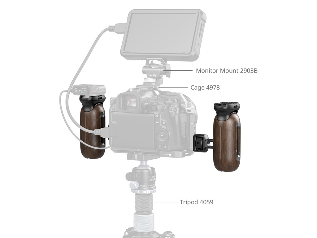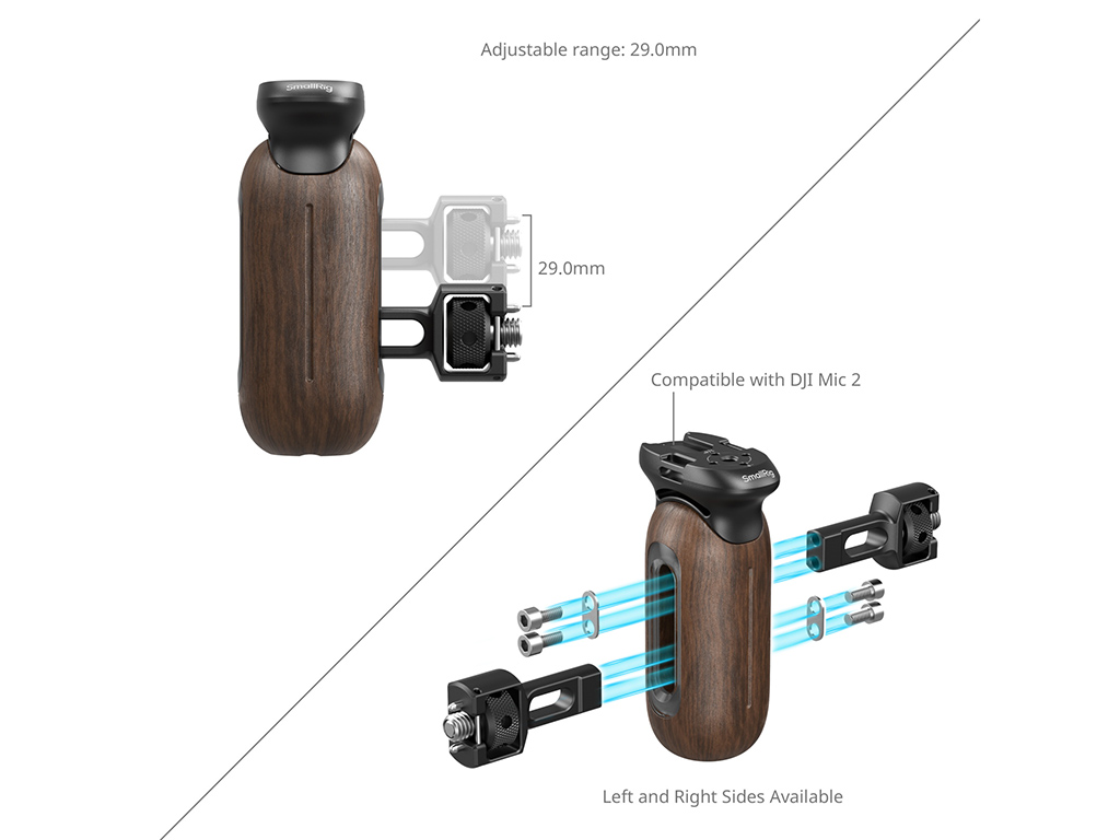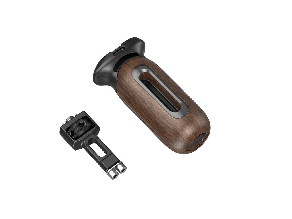 İkisi Bir Arada Tespit Vidalı SmallRig Ahşap Yan Sap 5238, çok yönlü genişleme yetenekleri sunarken, özellikle çift elle kullanım için mobil çekim stabilitesini artırmak