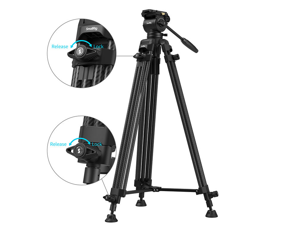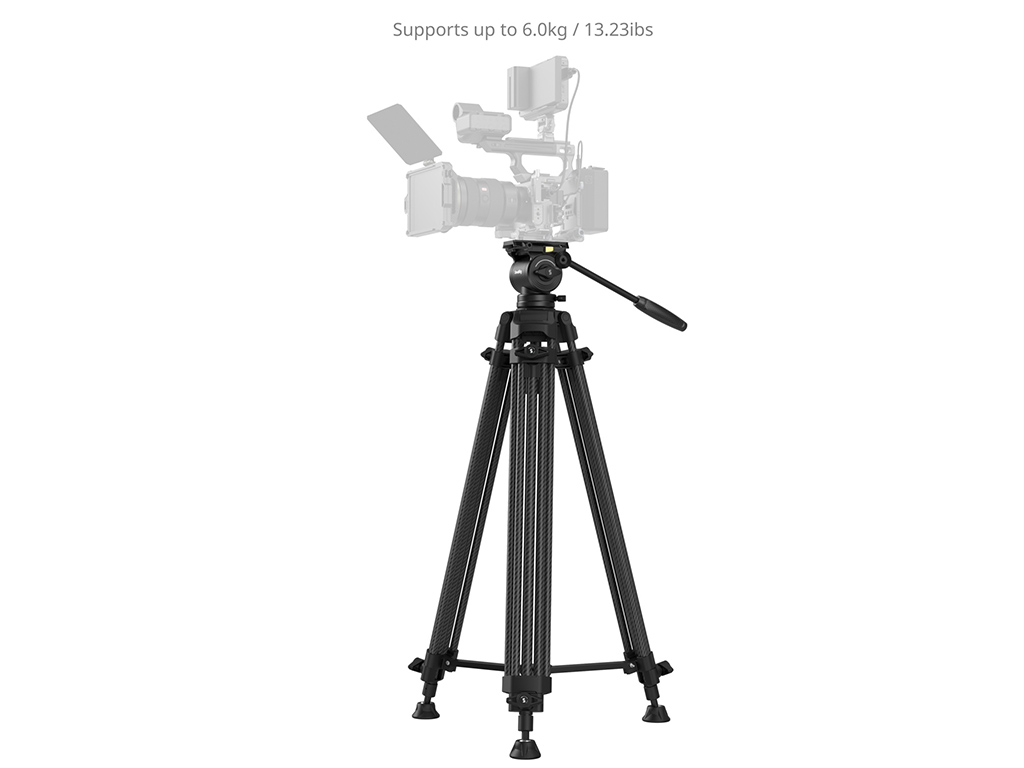 Constructed from carbon fiber, the tripod features a 2-2-1 segmented leg design and built-in anti-detachment swivel feet, ensuring optimal stability on uneven or rocky terrain. Despite its sturdy construction, the entire system weighs only 2.7kg (6lb), making it exceptionally easy to transport in fast-paced shooting environments.