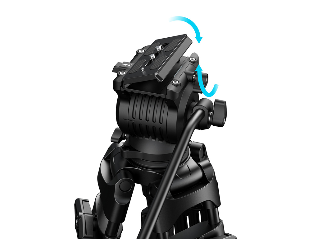 Equipped with a lightweight fluid head with fixed damping system that supports up to 8kg (17.64lb), it ensures smooth and precise pan-and-tilt movements for expert-level filming. It is also compatible with standard Manfrotto quick release plates that support lateral mounting, enabling quick and secure camera attachment.