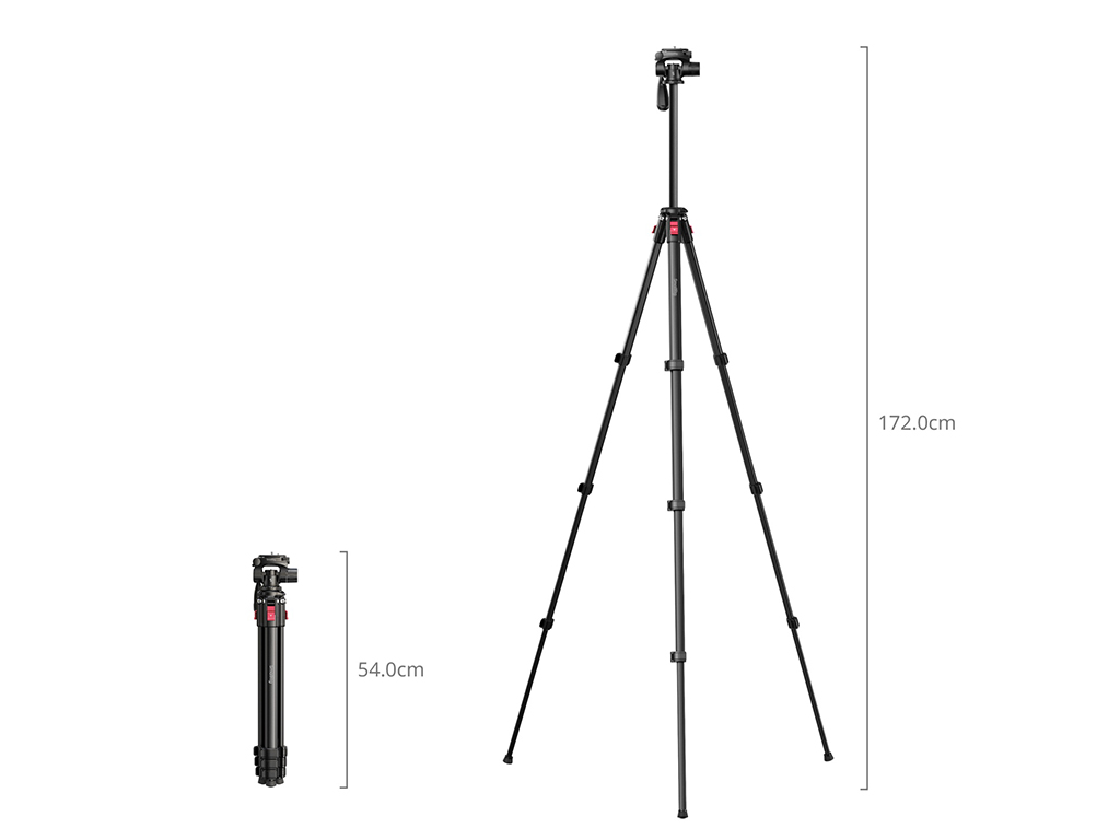 With an adjustable center column that extends to a working height of 172cm (67.7in), this tripod meets diverse shooting requirements. When it’s time to pack up, it collapses to a compact 54cm (21.2in) for easy transport, weighing just 1155g (40.7oz) — making it the perfect companion for on-the-go shooting.