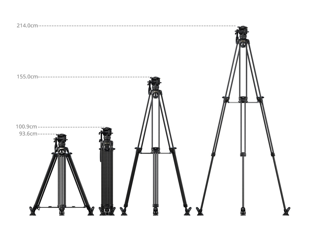 maksimum yük kapasitesi sunar. Tripodun çalışma yüksekliği 93,6 cm'den 214 cm'ye kadar değişir ve yüksek açılı çekim senaryoları için yüksek