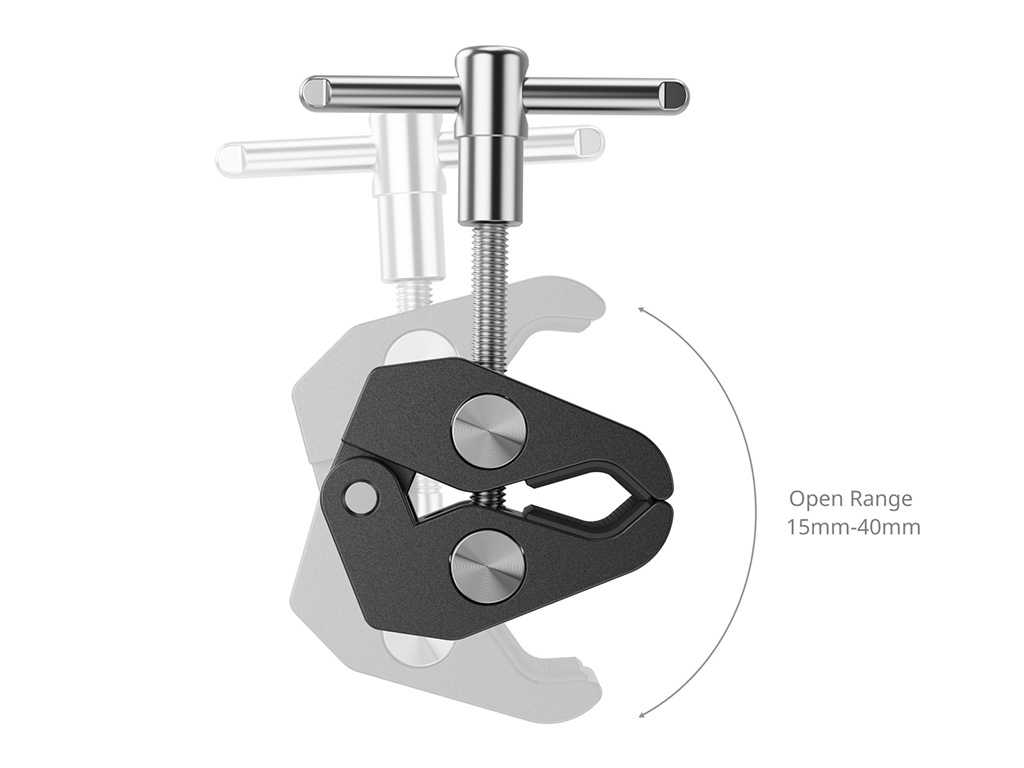 sağlar. Kompakt ekipmanlarla benzer kurulumlar için SmallRig'in yengeç şekilli kelepçe kitlerine sahip sihirli kolunu (ID 4454, 4766, 5624) göz önünde bulundurun.