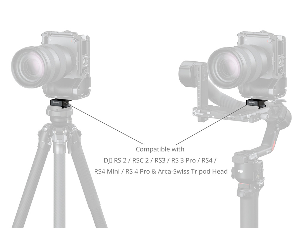 kalır ve engelsiz izleme ile kusursuz, profesyonel bir çekim deneyimi sağlar. Plaka, Arca tipi tripodlar ve DJI RS serisi sabitleyicilerle (RS 2, RSC 2, RS 3, RS 3 Pro, RS 4, RS 4 Pro ve RS 4 Mini dahil) uyumludur ve iş akışını iyileştirmek için