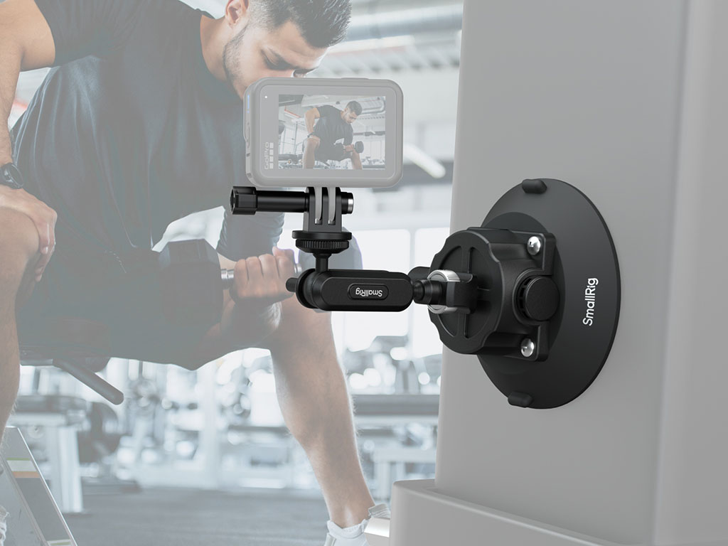 SmallRig Aksiyon Kameraları için Vantuzlu Destek, dayanıklı nitril kauçuk vantuz, çok yönlü sihirli kol ve aksiyon kamera montajından oluşan güvenilir üç bileşenli bir çekim