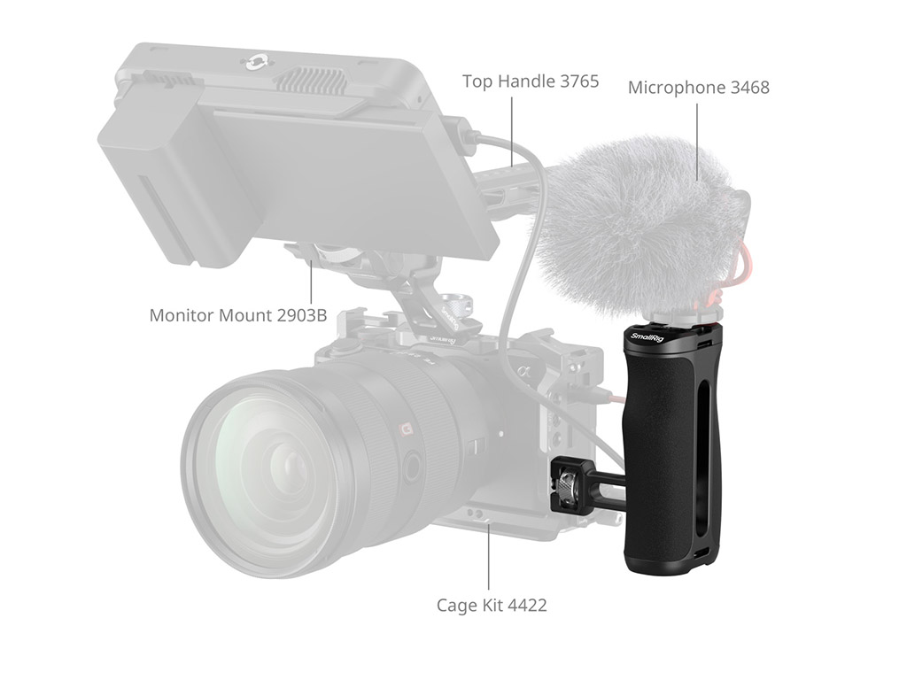 SmallRig 5950 model 1/4''-20 konumlandırma vidasına sahip yan tutamak, dinamik elde çekimleri geliştirmek, akıcı hareket ve kusursuz kontrol sağlamak ve çok yönlü