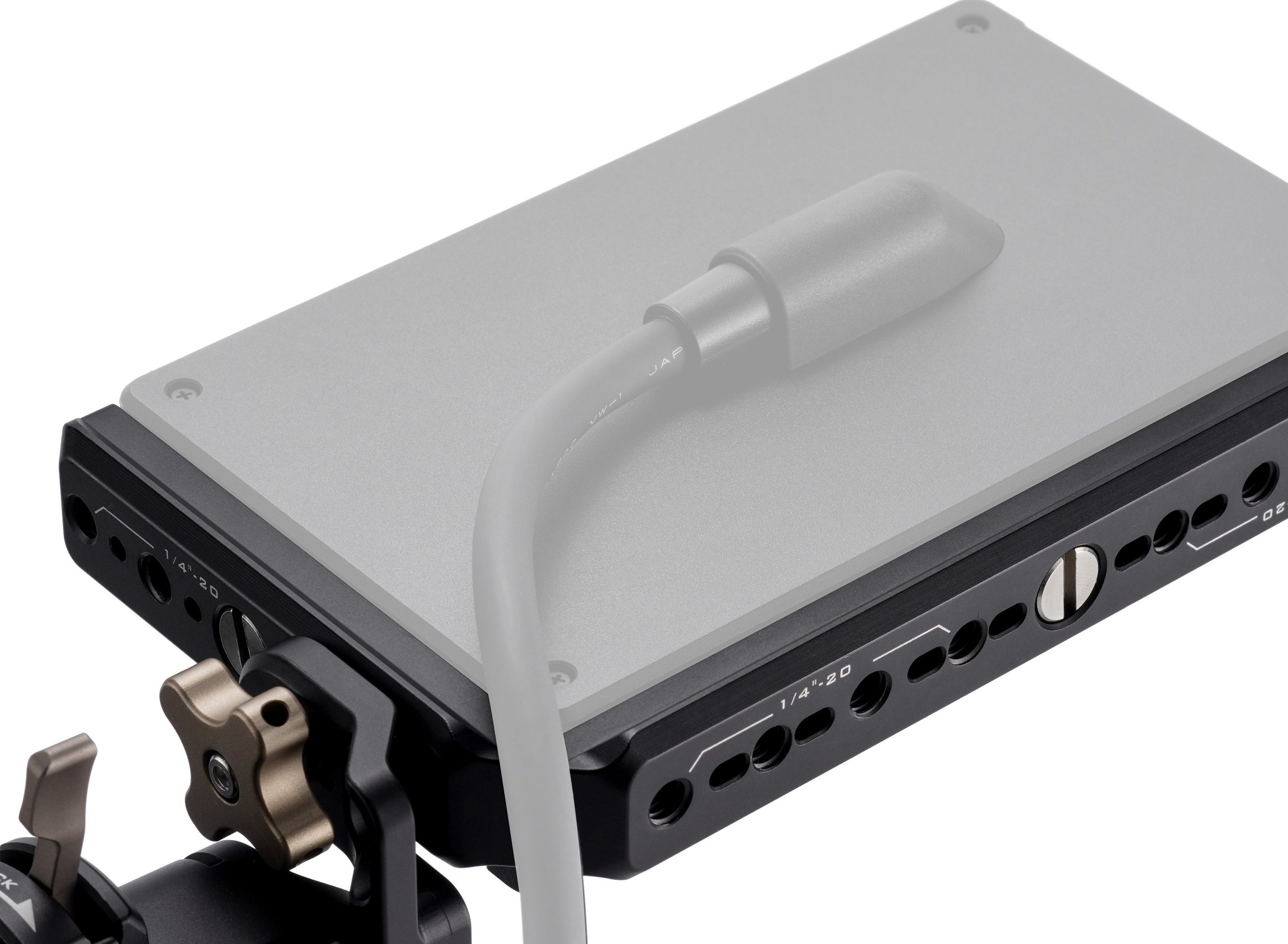 Genişletilmiş montaj esnekliği için, bu L-Braket monitör montajı, tabanda birden fazla 1/4″-20 diş ve bir NATO rayı ekler.