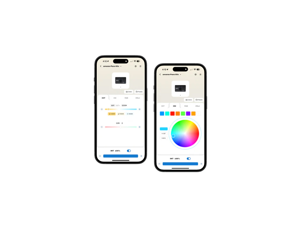 Amaran uygulaması ile ışıklarınızı kablosuz olarak kontrol edin – çekimler sırasında hızlı ayarlar yapmak veya canlı etkinliklerde çoklu ışık kurulumlarını yönetmek için idealdir. İster amaran Pano 60c’niz ulaşılması zor bir yere monte edilmiş olsun, ister tam donanımlı bir stüdyoda çalışıyor olun, amaran uygulaması sayesinde tüm ayarları telefonunuzdan veya bilgisayarınızdan tek tıkla ince ayarlayabilirsiniz.